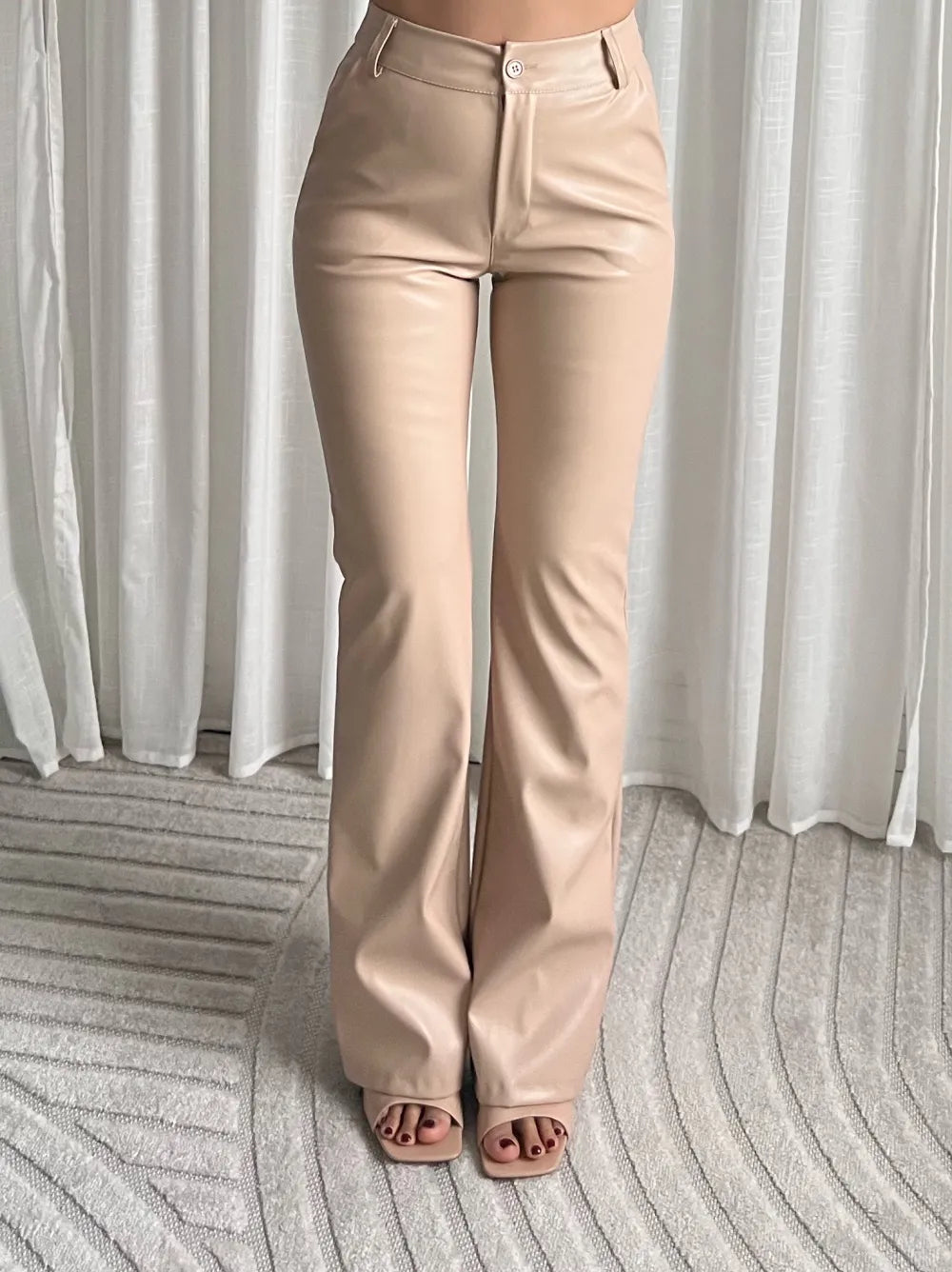 De leren broek is gemaakt van imitatieleer, heeft een hoge taille en rechte pijpen. Deze leather look broek is een echte must have! De frisse beige kleur is gemakkelijk te combineren. Stijl de broek met een leuk top en een paar hakken voor een complete look. De Leather Pants Kayla is ook verkrijgbaar in het zwart, cream of choco.