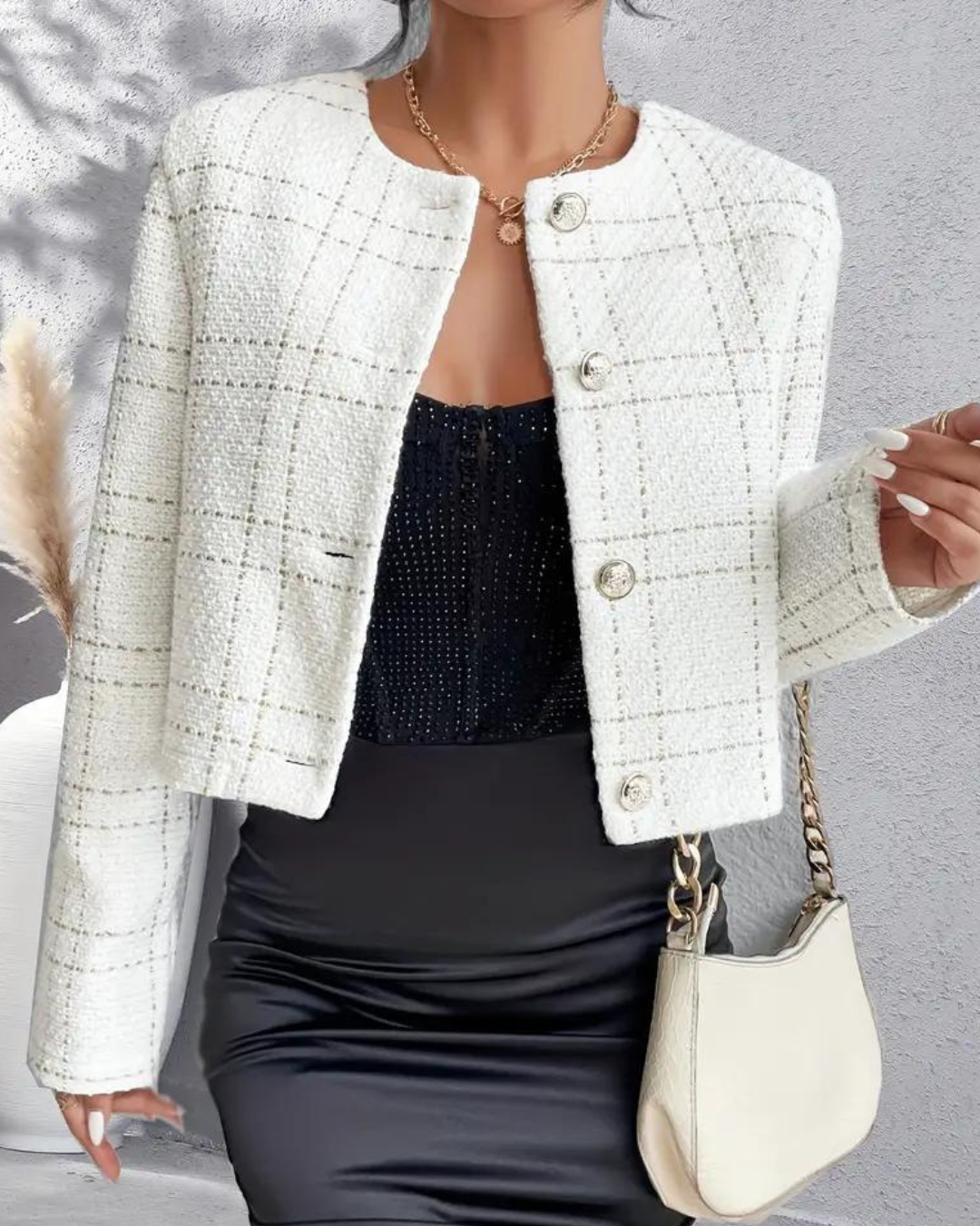 Geef je look een vleugje klassieke elegantie met onze prachtige geruite blazer!  Ontworpen voor de moderne vrouw die stijl en verfijning waardeert, is deze blazer een tijdloos item dat elke outfit naar een hoger niveau tilt. Met zijn subtiel patroon en perfecte pasvorm is deze blazer ideaal voor zowel formele als casual gelegenheden. Voeg een vleugje chic toe aan je garderobe en laat jezelf stralen in deze must-have blazer!