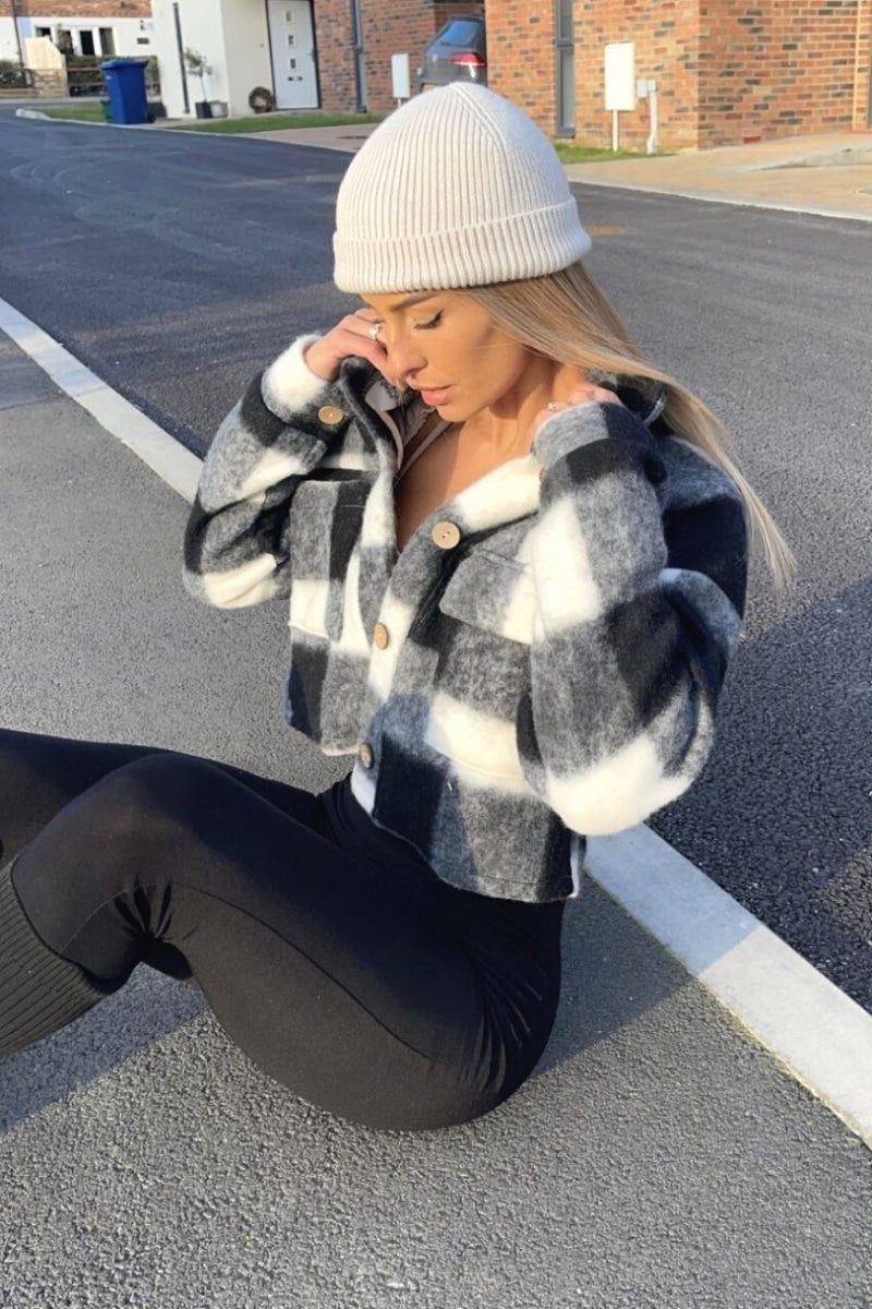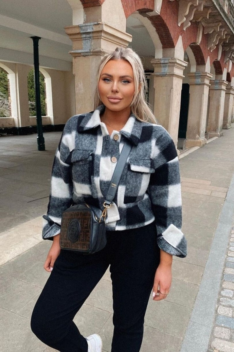 De checked trend is nog steeds erg geliefd! Combineer deze cropped jas met een zwarte skinny jeans en boots voor een sportieve look.