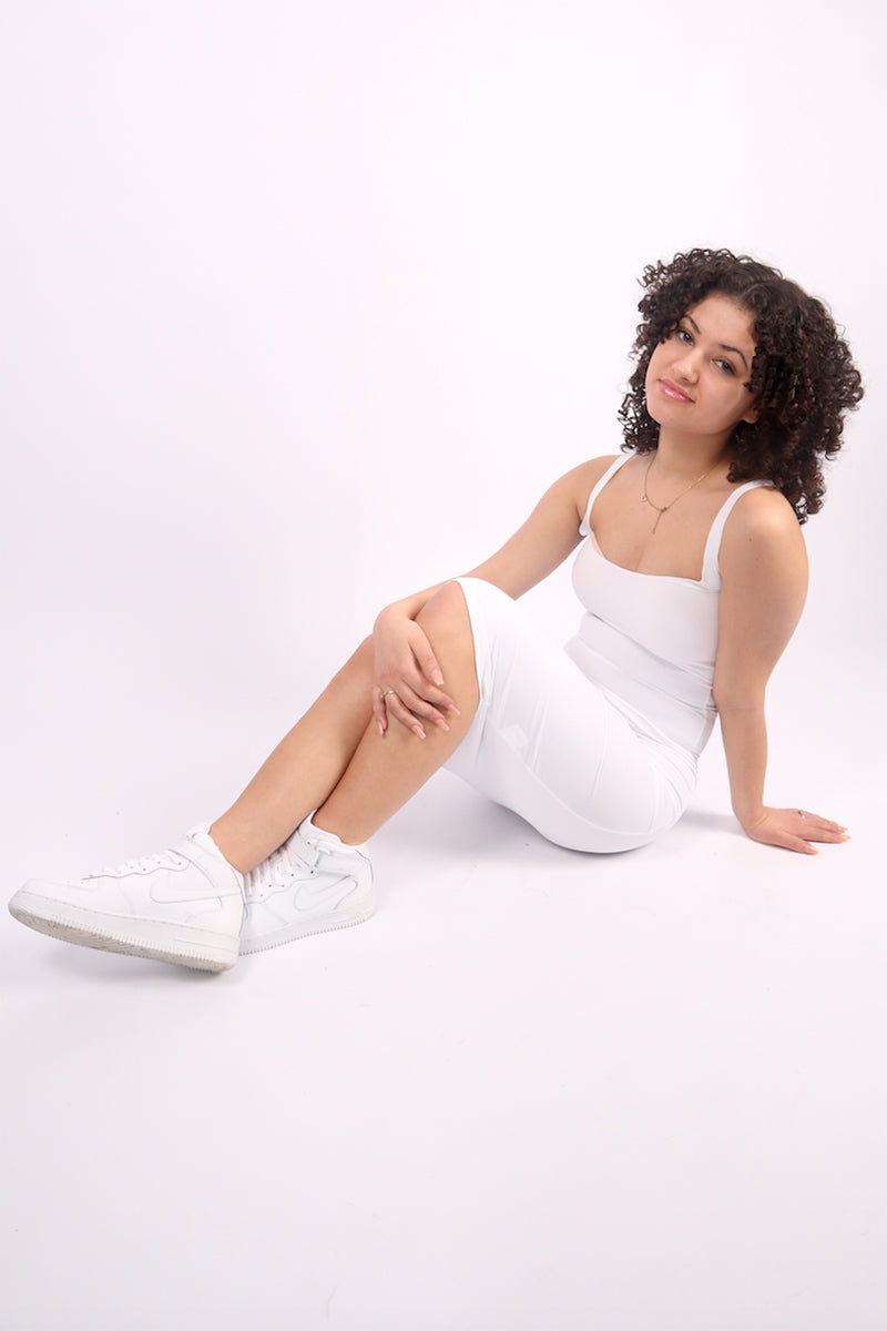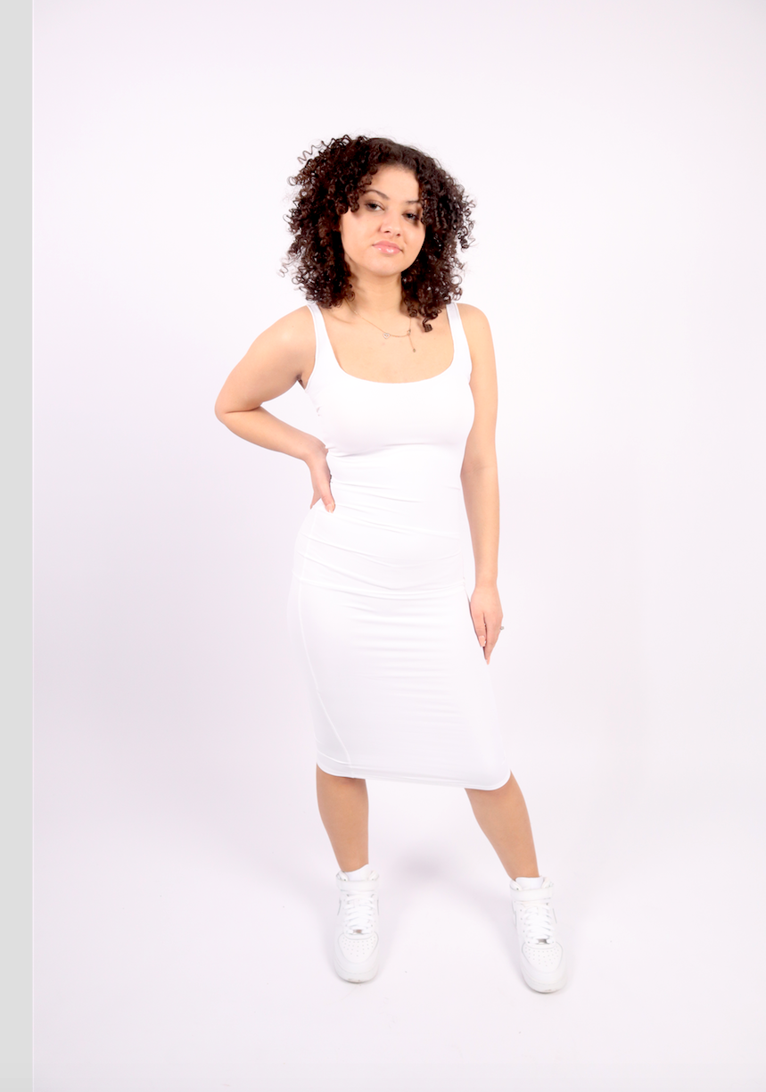 Deze zomerjurk met bandjes is op vele manieren te combineren. Stijl de jurk met een stoere spijkerjas en sneakers voor een sportieve look.