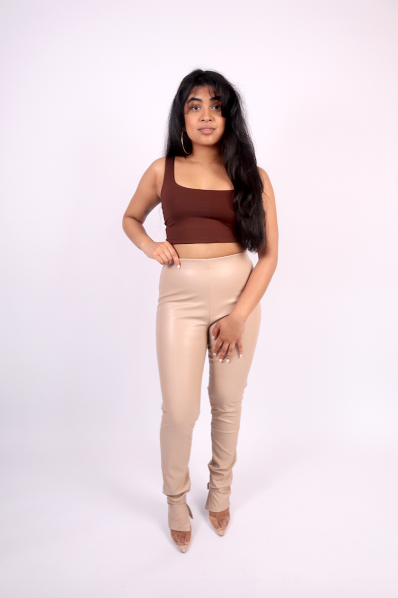 Deze top met bandjes is een all time favorite basic! Combineer de top met onze leather look legging met split voor een complete look.